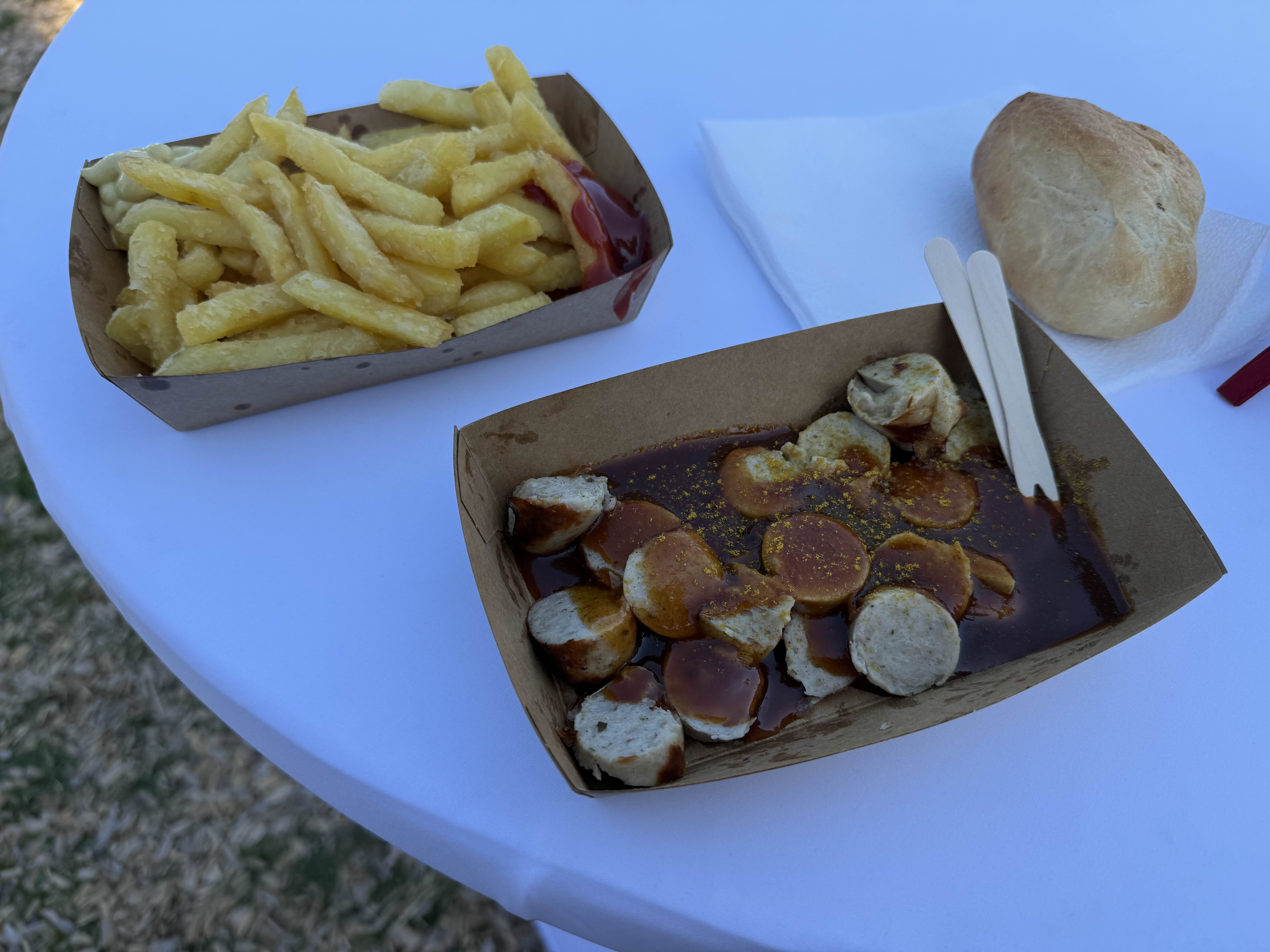아침에 공원으로 산책 나갔다가 웬 행사를 하길래 가보았다. 9월에 있을 선거 때문에 정치인이 행사를 하는 것이었다. 음반을 틀었나 싶게 훌륭한 라이브 공연에 놀랐다. 커리 부어스트, 감자튀김을 사먹었다. 진짜 너무 맛있었다.