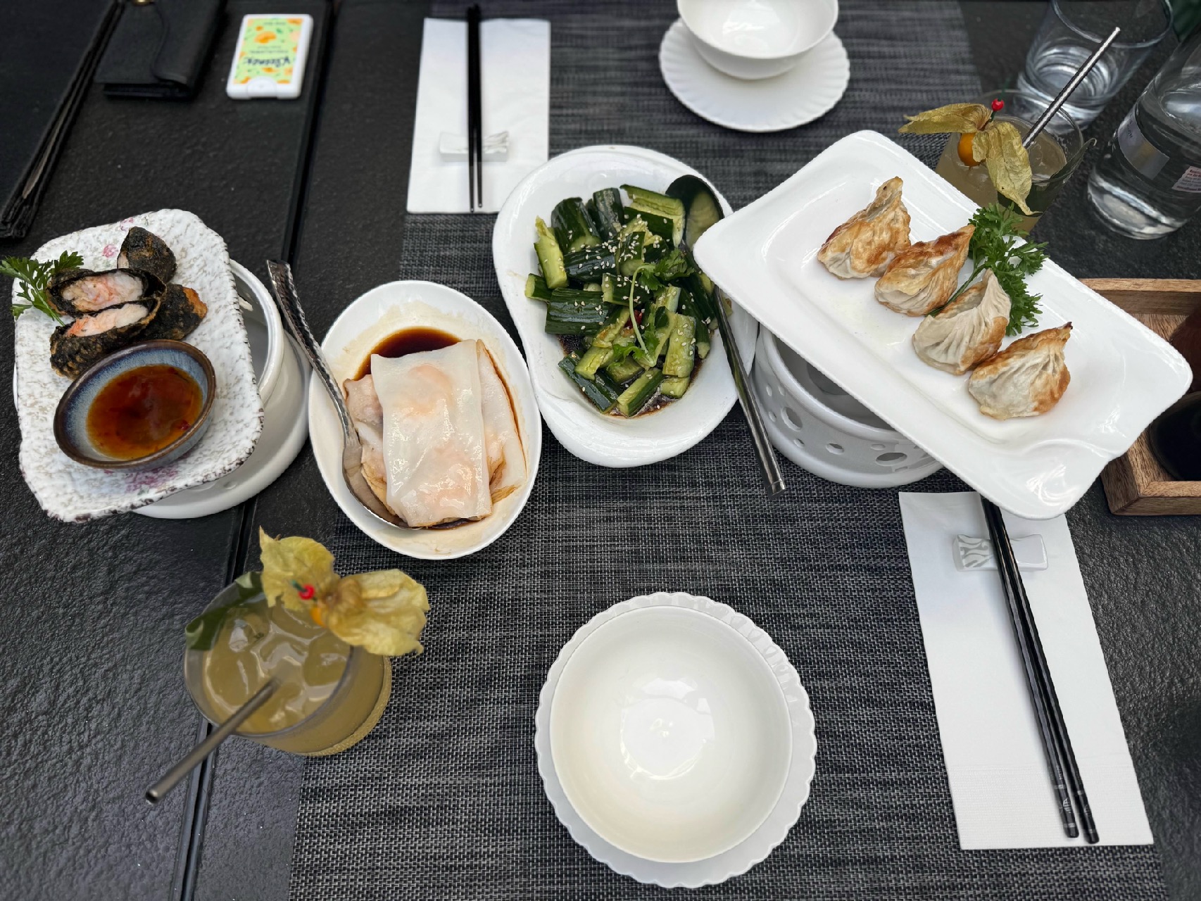 칵테일이 한 잔에 23유로나 하길래 어디 뭐냐고 시켜봤는데, 살면서 먹어본 것 중에 제일 특이하고 맛이 좋았다. 베이컨 맛이 나서 뭐지 했더니 피트? 모르겠지만…. 마파두부가 동파육으로 변신해 나왔지만… 너무나 친절하신 직원분과 여전히 다 맛있던 딤섬 덕에 좋은 시간을 보냈다.