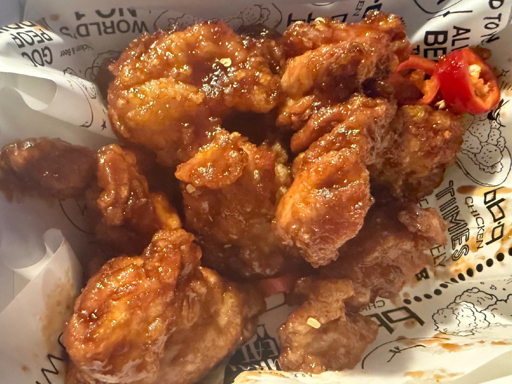 퇴근하고 나니 bbq 강정 치킨이 너무 먹고 싶어서 거의 한 시간을 고민하다가… 친구가 자기 돈으로 사먹으라고 해서 몇 번 거절 끝에 결국 얻어먹었다.