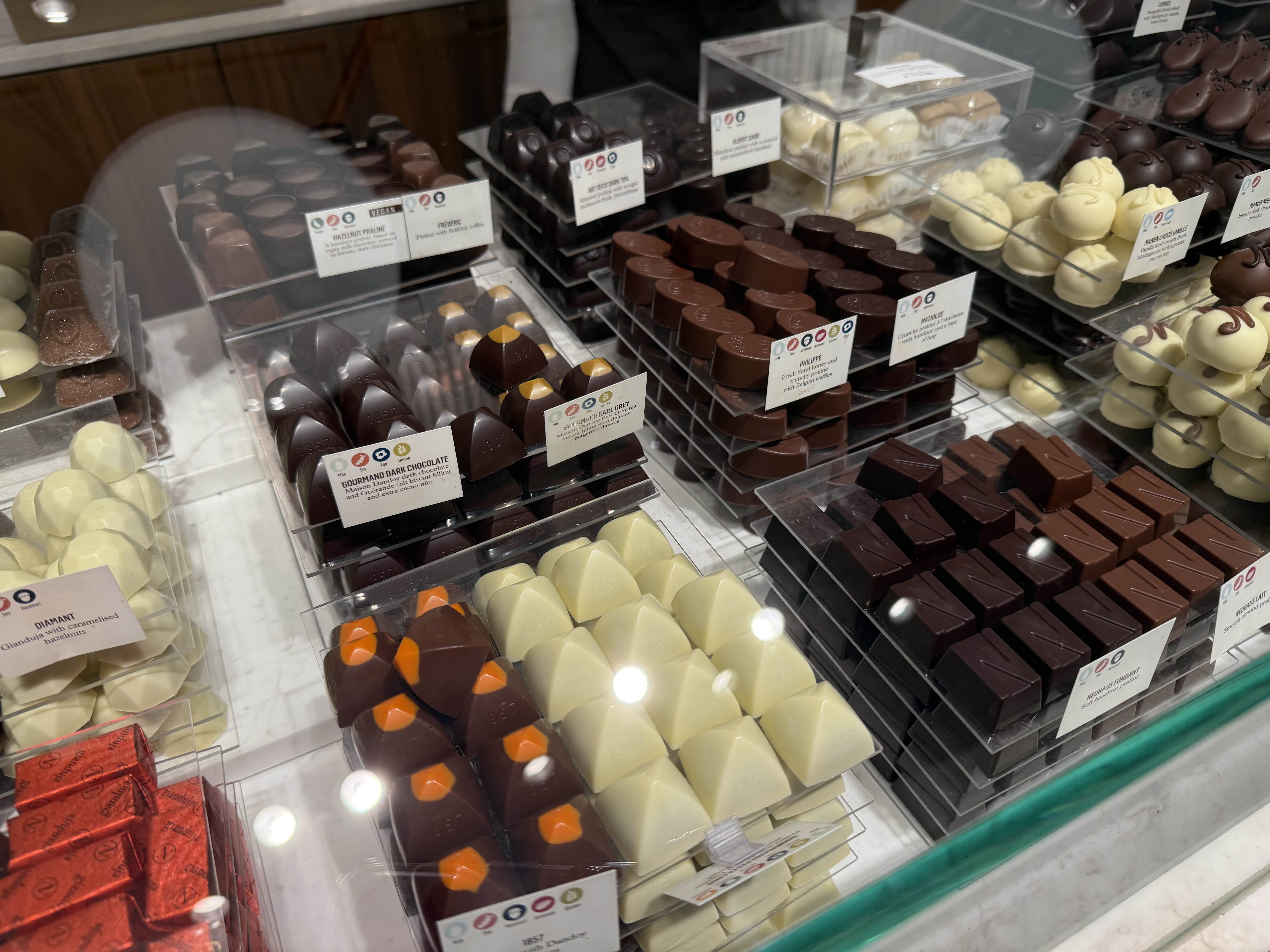 9시 30분에 유일하게 문을 연 노이하우스. 프랄린을 최초로 만든 곳이라는데, 상자에 든 것을 세트로 살 수도 있고 무게를 달아 살 수도 있다. 다크 초콜렛 몇 개를 고르고 가장 전형적이고 무난한 걸 추천해달라 하니 헤이즐넛을 권해서 그것도 같이 샀다.